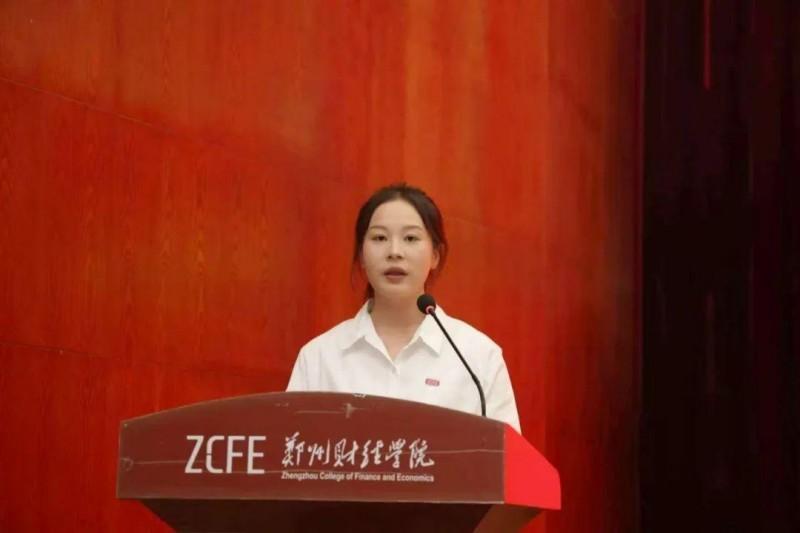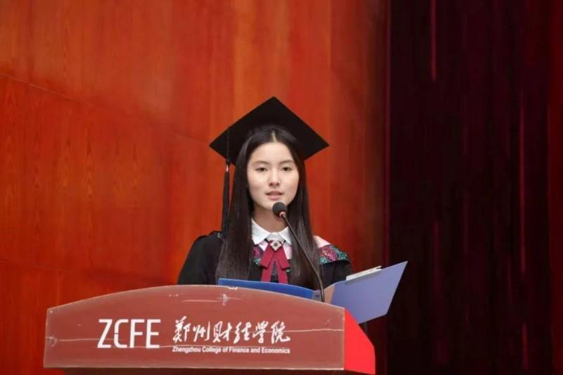 2021级财务管理本科3班张雪梅作为毕业生代表发言。她回顾了大学四年的学习生活,感恩老师的教导、怀念同学的陪伴,愿母校再创辉煌,老师顺遂安康,同学前程似锦,以青春赴未来,顶峰相见!
